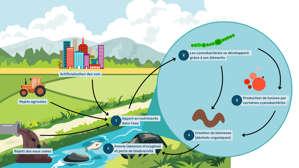 Enrichissement en nutriments, surtout en phosphore : les apports provenant des activités humaines favorisent leur croissance.
